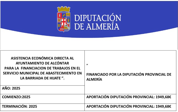 SUBVENCIÓN DIPUTACIÓN DE ALMERIA PARA TRABAJOS EN DIFERENTES SONDEOS DE ABASTECIMIENTO MUNICIPAL